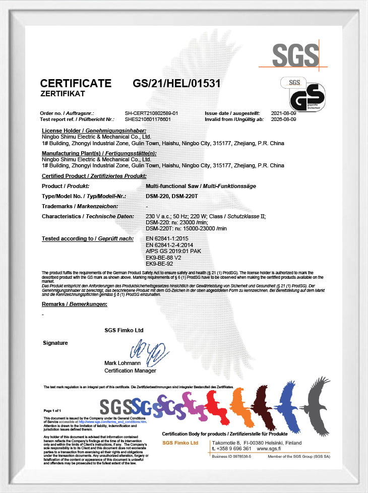 Certificado SMD100001-300W GS