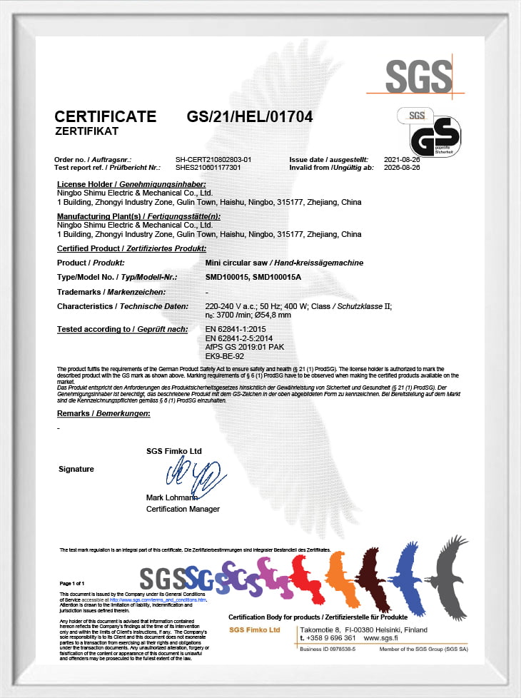 Certificado SMD100015-400W GS