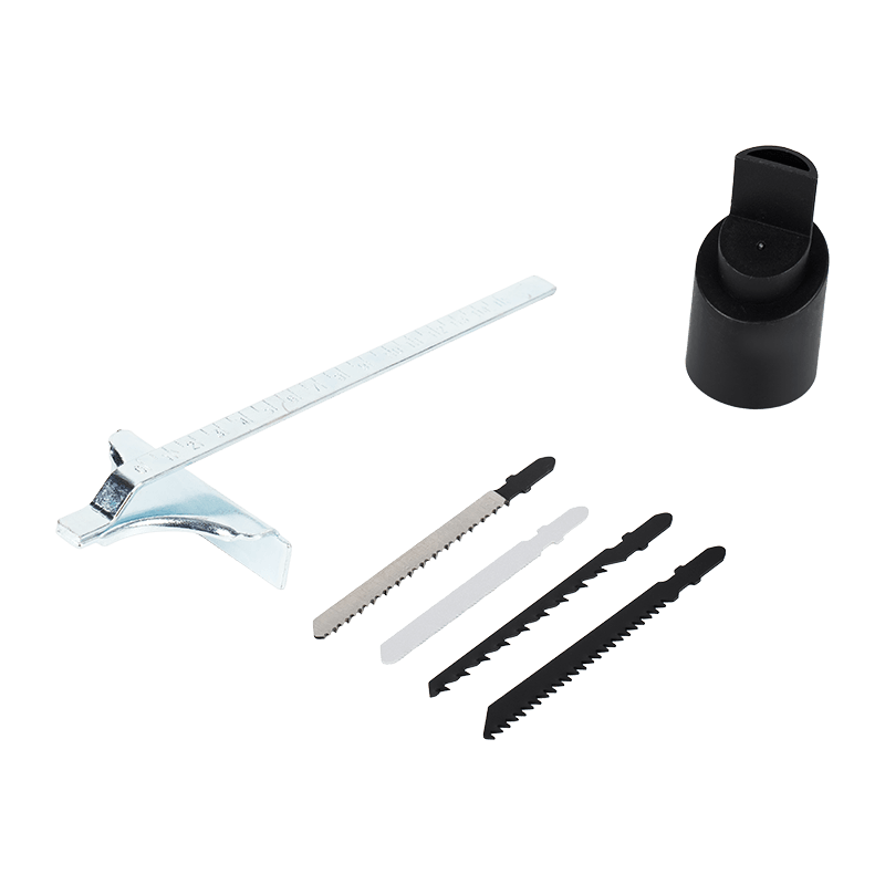 Cambiar las hojas de sierra es fácil con el mecanismo de liberación rápida. El rompecabezas también cuenta con una función de soplado de polvo y una conexión para extracción de polvo externo, lo que mantiene limpio su espacio de trabajo y proporciona una vista clara mientras corta.